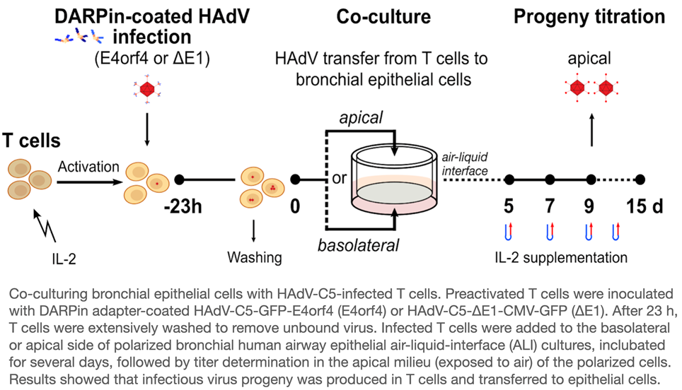 Activated blood-derived human primary T cells support replication of HAdV C5 and virus transmission to polarized human primary epithelial cells