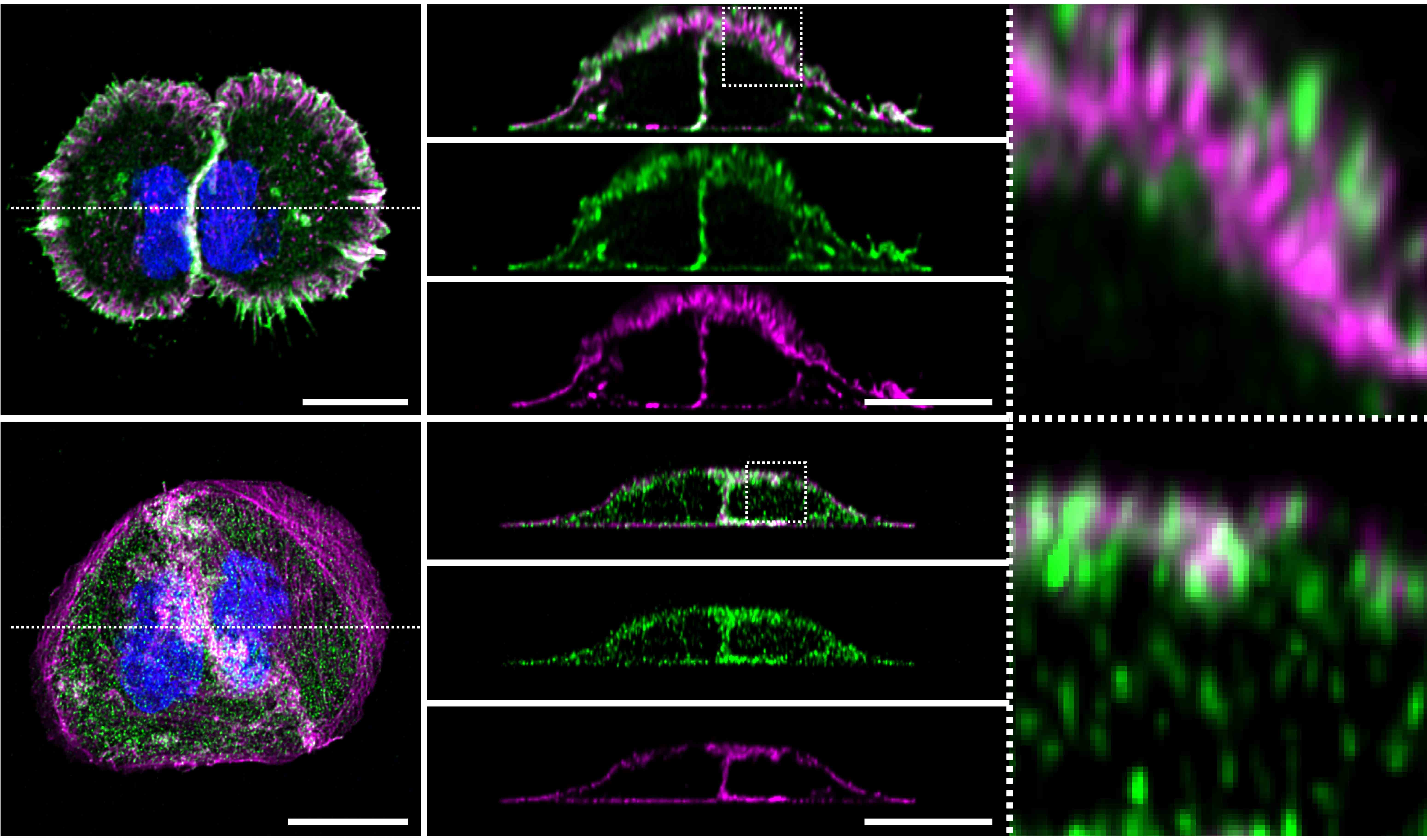 Caenorhabditis elegans is an excellent model to study processes such as morphogenesis, germline development or cell invasion in vivo. However, certain biological questions are very difficult or rather impossible to answer with multicellular organisms due to their high complexity and the associated technical difficulties. To overcome these limitations, and to test if the processes identified in Caenorhabditis elegans are also conserved in human, we are also working with various mammalian cell lines. Thereby, we are depleting the human homologous of the genes that are investigated in the worm in mammalian cells by lentiCRISPR or an inducible shRNA system, and analyze them with various techniques such as RNAseq, cell cycle analysis by FACS, cell invasion assays, immunoblotting and immunostainings.