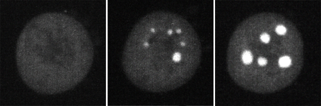 Currently, we are exploring other phase separation-based mechanisms controlled by dual-specificity kinases, which is bringing us to the fields of membrane trafficking, DNA replication, and chromatin. We are mapping the molecular complexity that underlies the homeostatic regulation of membraneless organelles and what their roles are in cellular physiology by employing proteomics and high-throughput image-based screens. And we are investigating the details of the cyclic mechanism by which dual-specificity kinases operate, as well as the role of phosphatases, using in vitro reconstitution and quantitative functional imaging.
